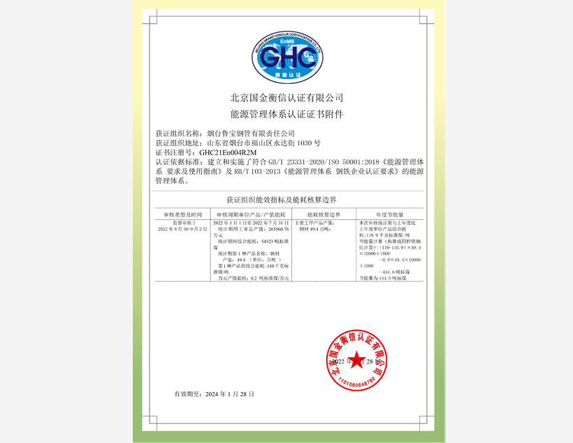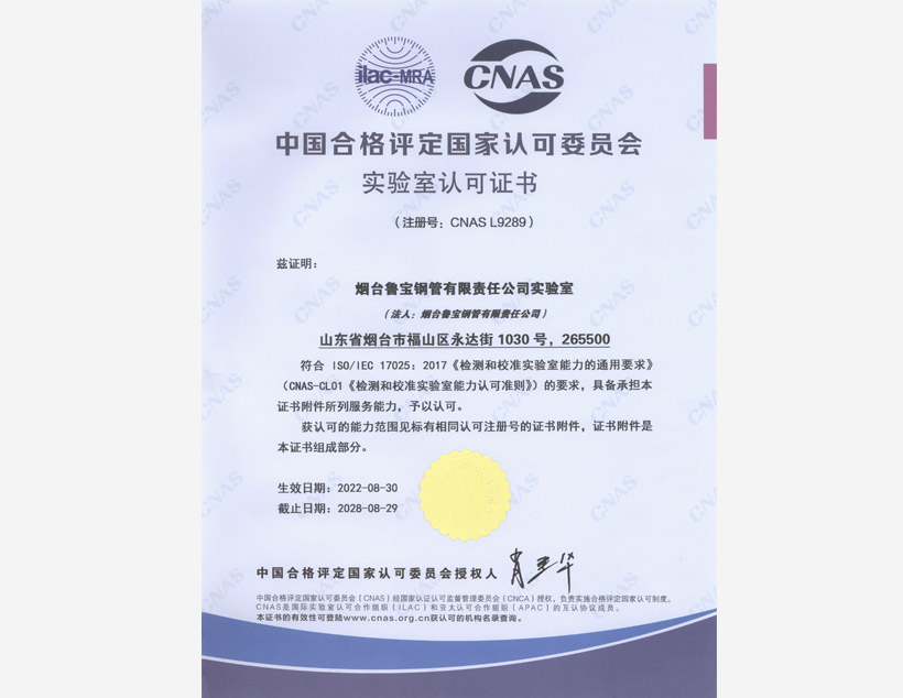 公司管理體系取得API Q1、ISO 9001、ISO 14001、ISO 45001和ISO 50001標準認證證書,實驗室取得ISO/IEC 17025認可證書。